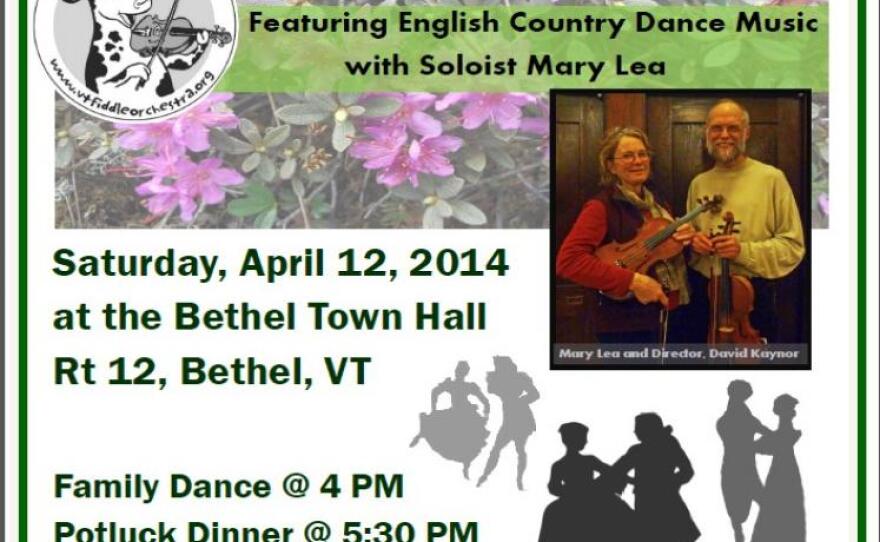 Dawn Anderson of Montpelier recommended the Vermont Fiddle Orchestra's concert this Saturday, April 12th at the Bethel Town Hall in Bethel with guest performer Mary Lea.