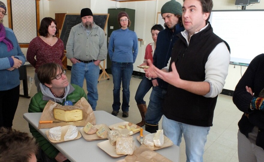 There’s a new course being offered at Sterling College in Craftsbury, and the final project is served up on a plate. The school has teamed up with the cheese makers at Jasper Hill Cellars in Greensboro to teach the art and science of artisan cheese. The first two-week session ended with a tasting of some of the students’ mistakes. But first, the instructor, international cheese consultant Ivan Larcher, gave a power point lecture laced with formulas and diagrams.