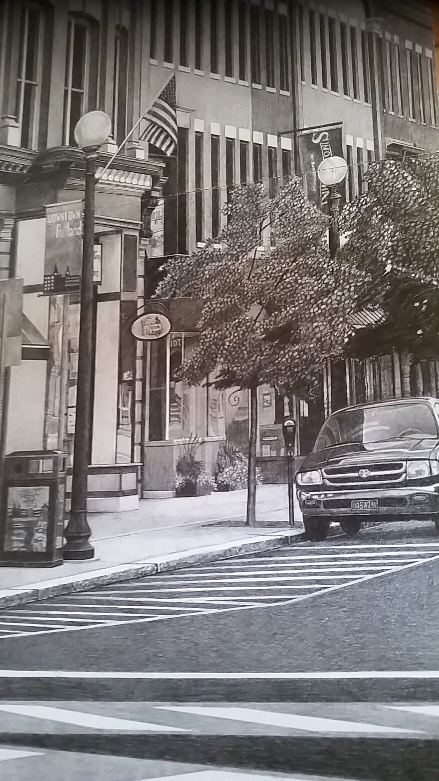 Ramage says to ensure accuracy, he had a photographer take more than 30 photographs of downtown Rutland with the lens exactly 63 inches off the ground. “Which is exactly the height of my eyes,” he says, “so you’re getting my perception.”